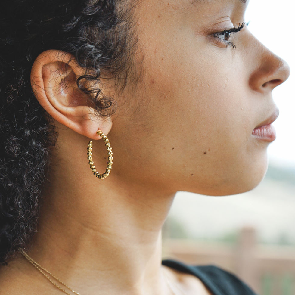 A bold take on my best-selling hoops, these feature larger moon-cut beads that catch the light like diamonds. These Gold hoops symbolize achievement and elegance, wear them and instantly feel effortlessly elevated.