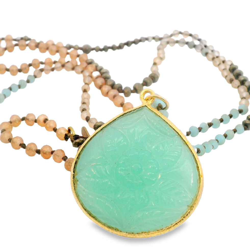 Carved Aqua Chaledony Long Necklace