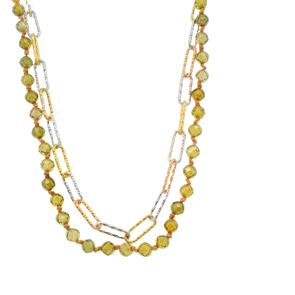 Diamond Cut Paperclip Chain + Green Cz Necklace