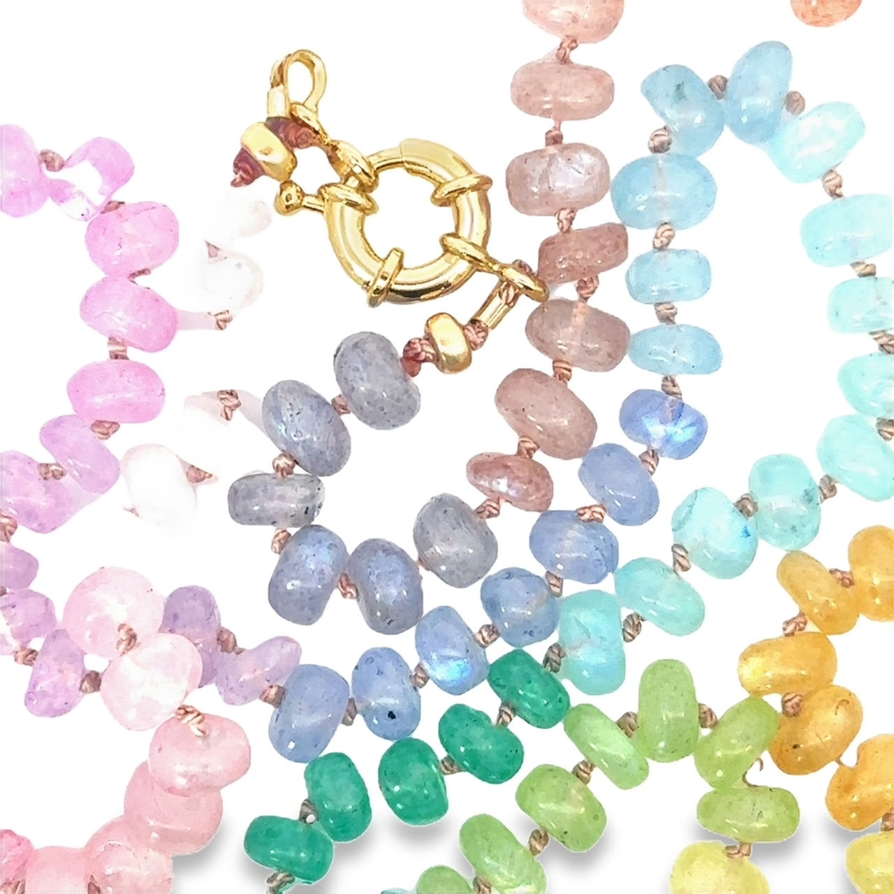 These Moonstones make me so happy. They are colored, but still has the rainbow moonstone colors through each stone.